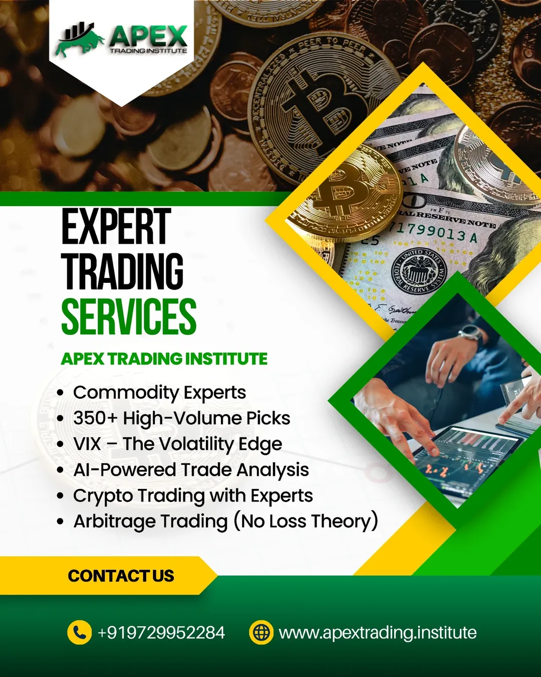 At Apex Trading Institute, we don’t just teach theory — we prepare you to trade and invest with confidence in real markets. Our approach blends expert mentorship, live market training, and AI-powered tools to give you a complete edge.